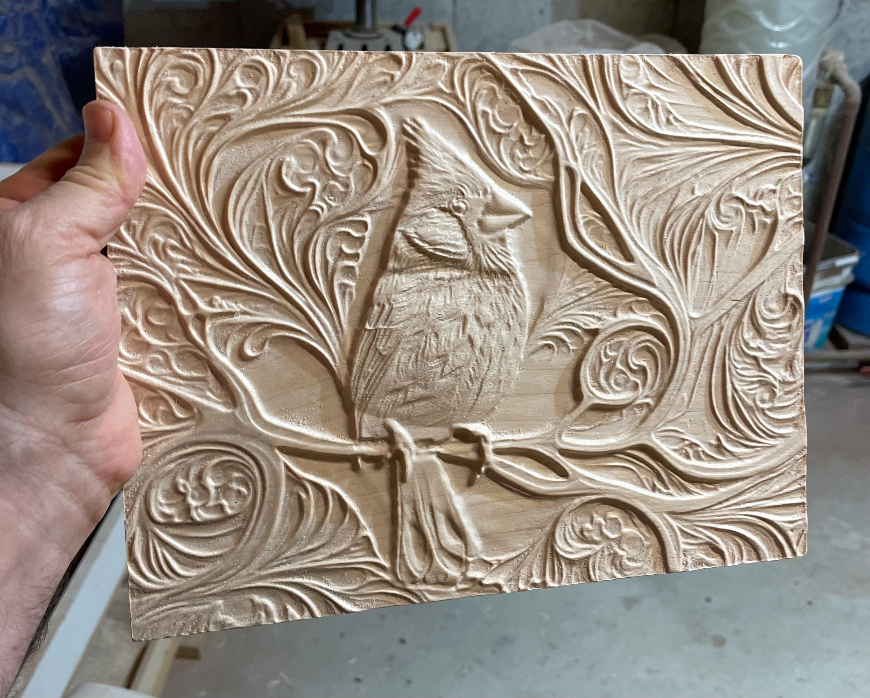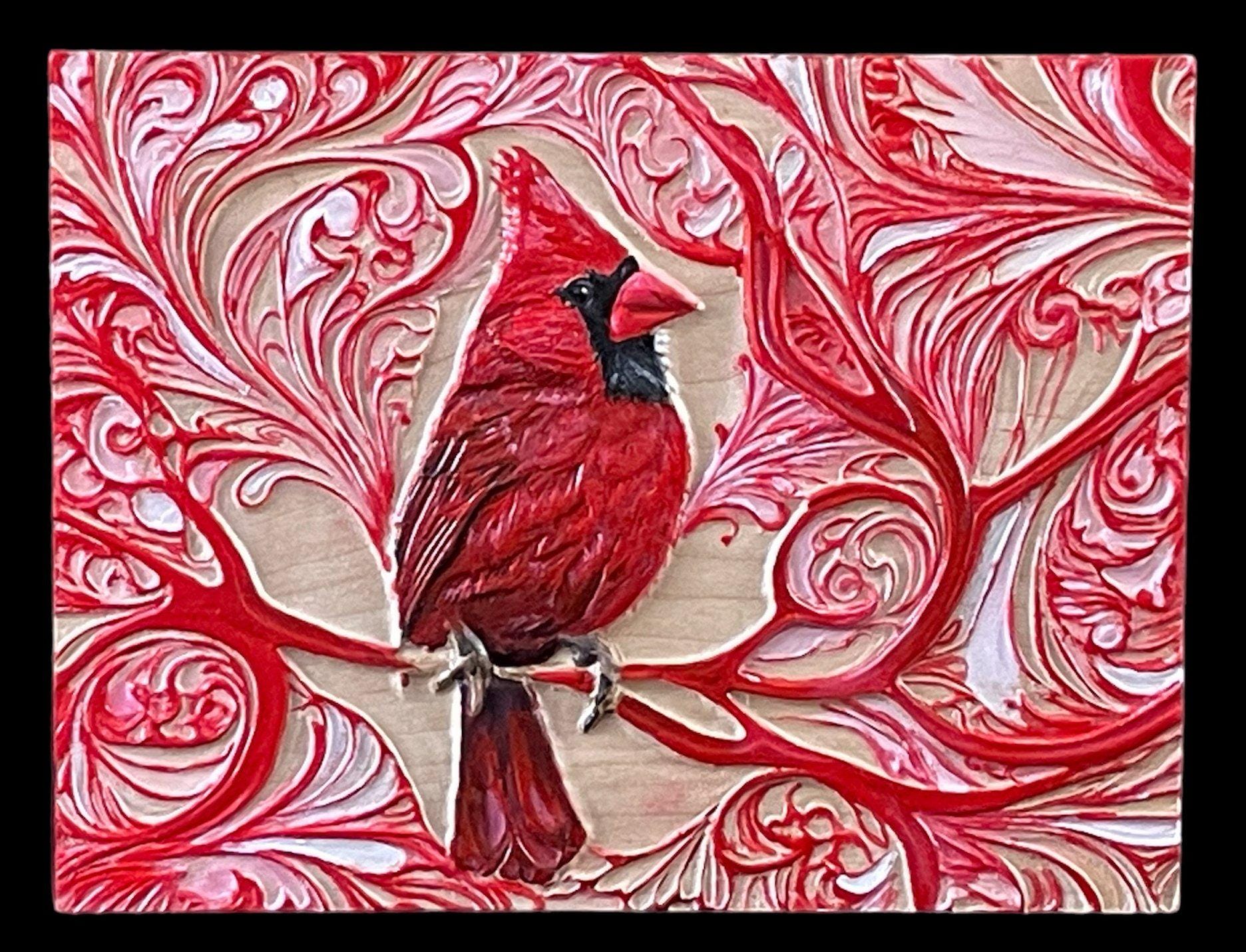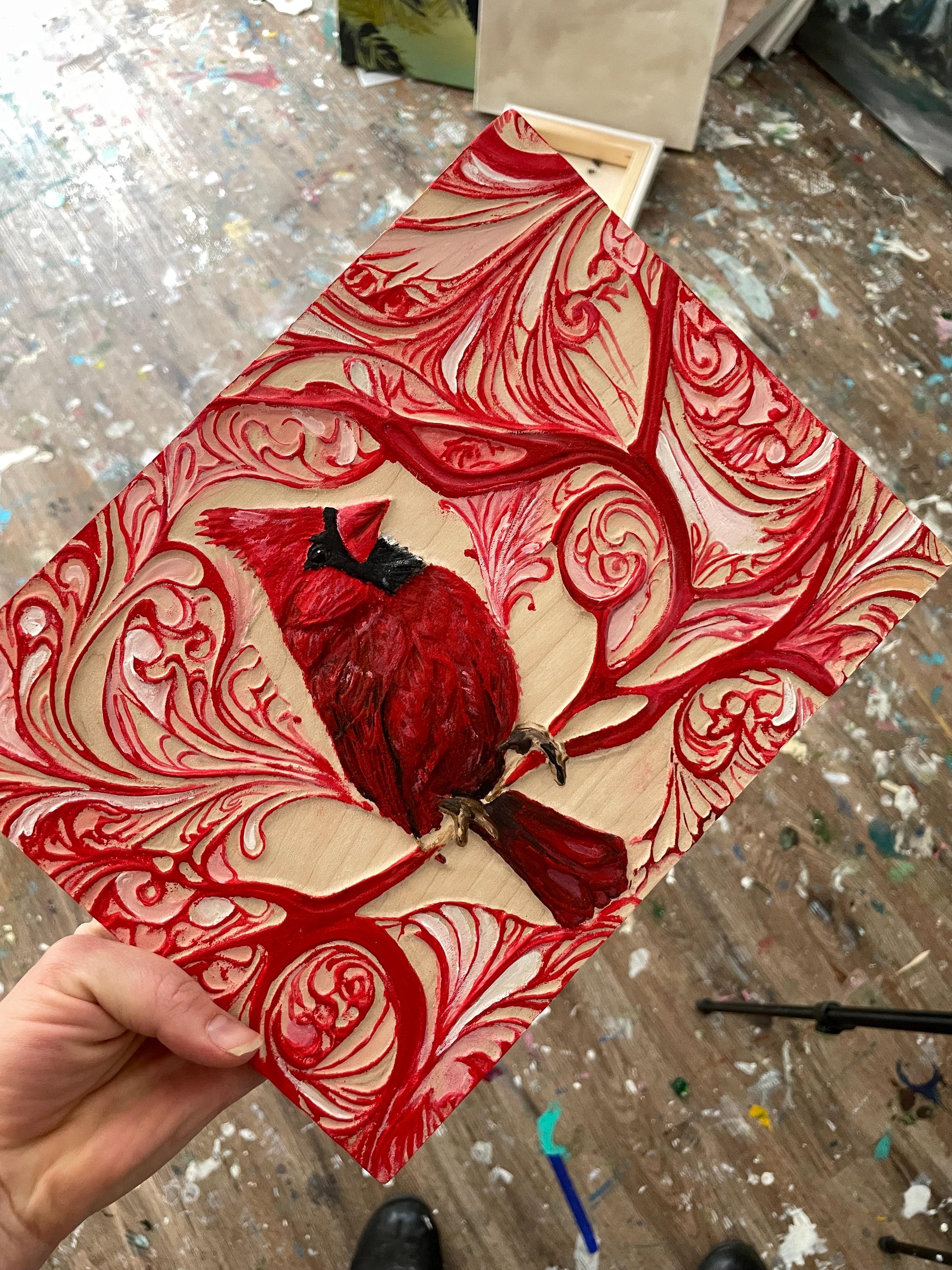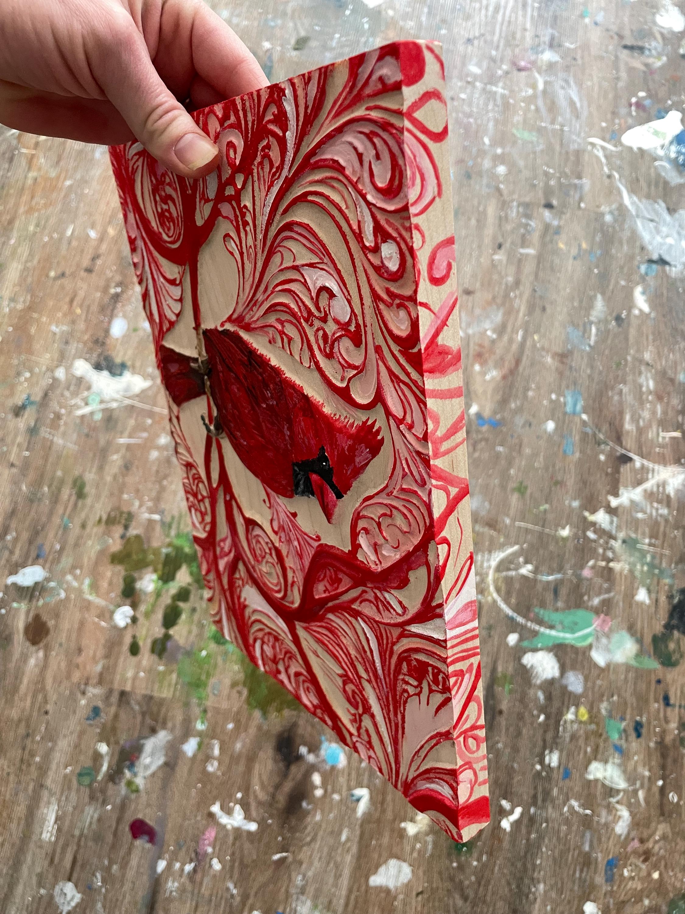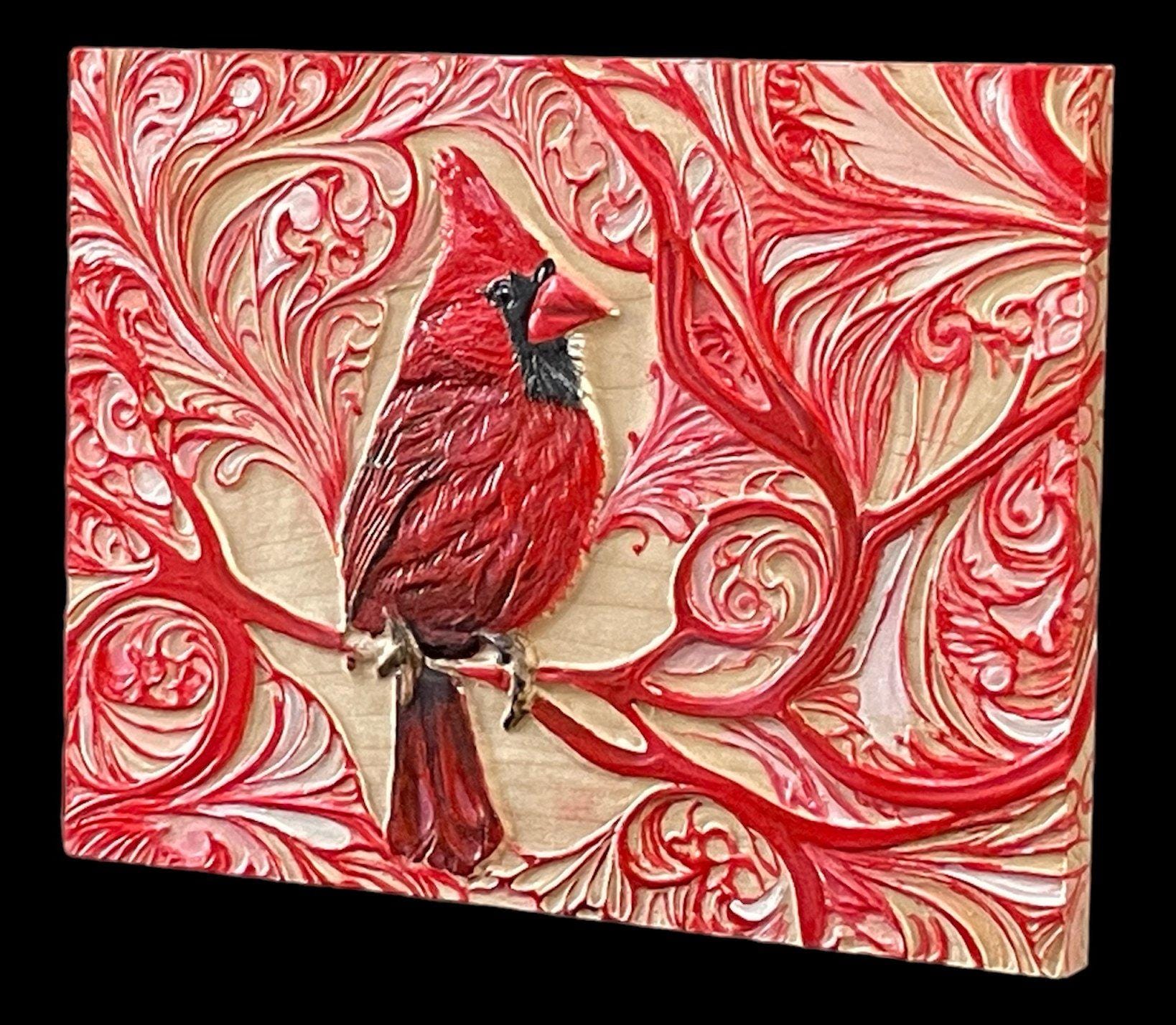 Wood carved red cardinal. Carved in maple with plenty of detail and texture giving it a 3d appearance. Hand painted. Wood finish applied. Ready to hang.